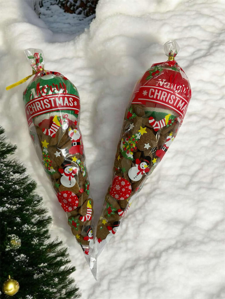 Whether your pup’s been a little naughty or very nice, this holiday treat bag is the perfect surprise! Each festive cone is filled with our popular Maple Bacon Biscuits — baked fresh with real, natural ingredients dogs love — and topped off with a holiday “Naughty or Nice” squeaky ball for extra fun.